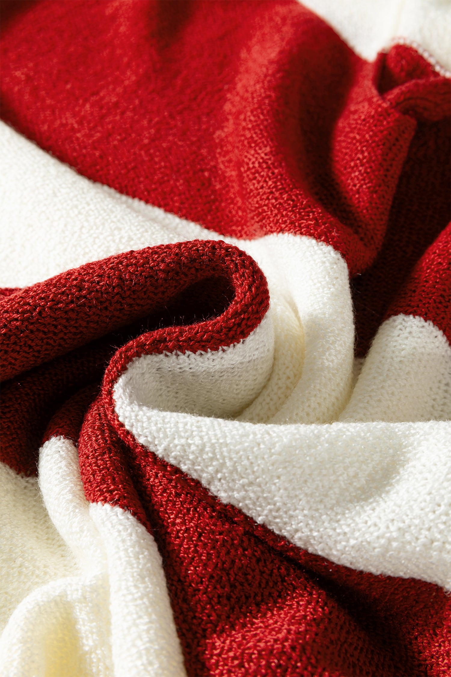 Red Stripe Cozy Color Block Bubble Sleeve Sweater